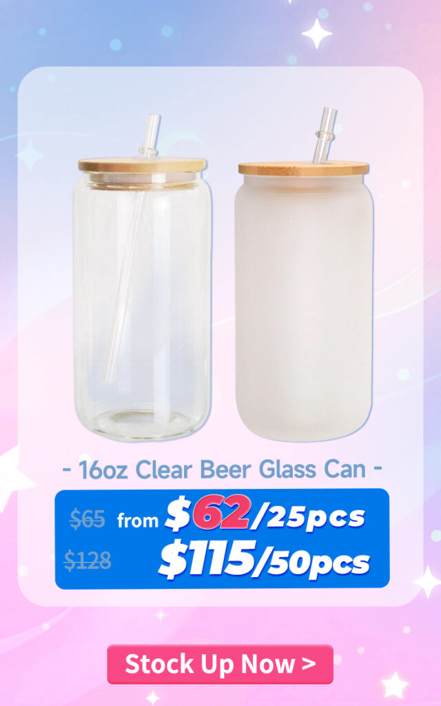 15oz Clear/Frosted Sublimation Glass Tumbler with Handle & Bamboo Lid