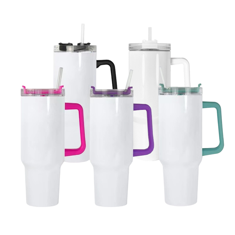 Stainless Steel Double Wall Sublimation 40oz Tumbler with Colorful Handle & Lid 16pcs